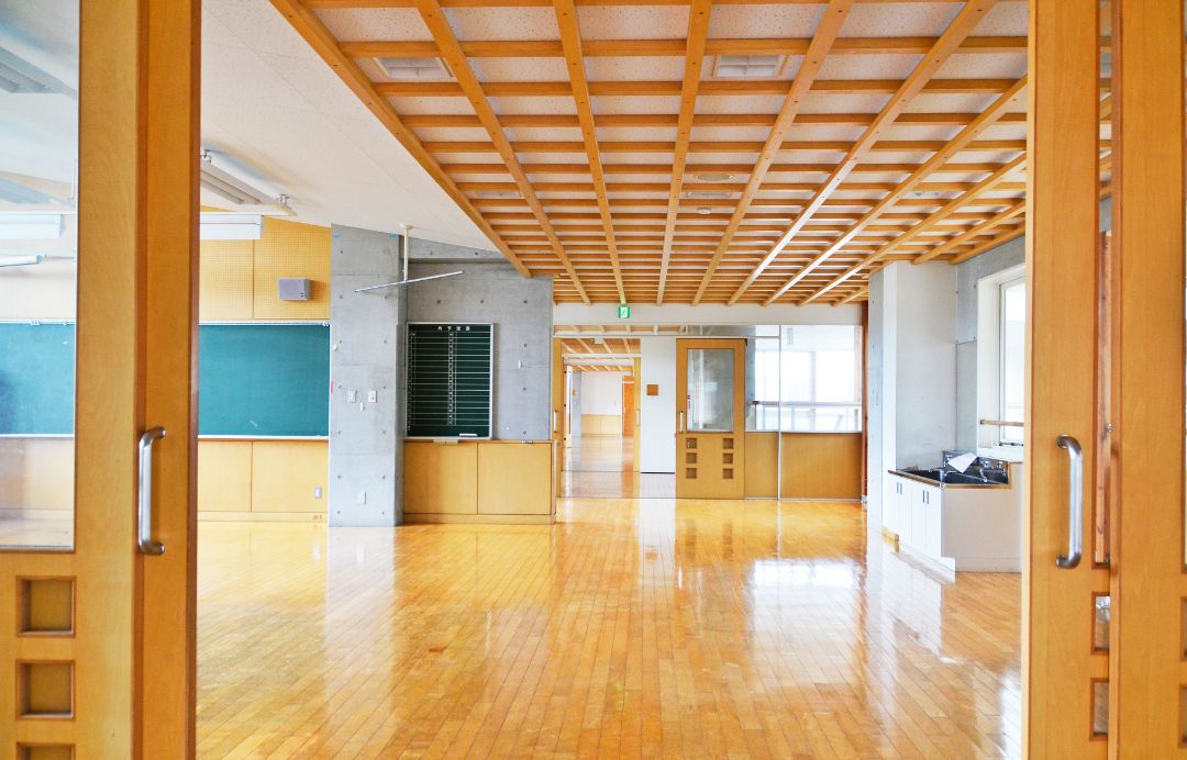 ろりぽっぷ小学校は、2015年に閉校した仙台市立坪沼小学校の校舎を仙台市から借り受けて、開校します。2階建ての校舎は,廊下との境のない教室、太陽の光が差し込む、吹き抜けの多目的ホール、バスケットボールやバドミントンなど様々なスポーツを楽しむことができる広々とした体育館など、四季折々の景色の中で明るく、のびのびと過ごすことができる開放的な構造になっています。